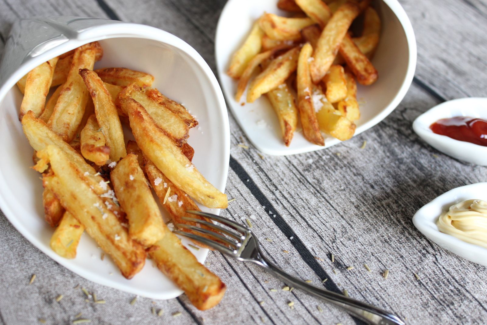 A la maison on aime les frites. On aime les bonnes frites faites maison, croustillantes à l'extérieur, fondantes à l'intérieur. Finalement c'est assez dur à faire, il faut bien connaître sa friteuse. Et puis la friteuse, il faut la nettoyer (galère assurée), c'est quand même beaucoup d'huile et surtout il faut la mettre dehors sinon, bonjour les odeurs pendant 24 heures.